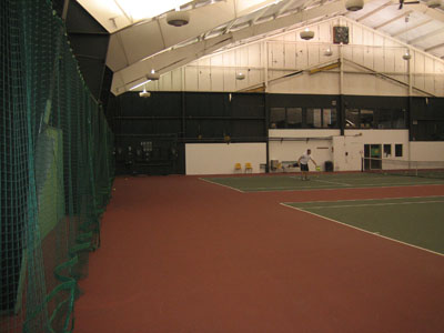 view of the back wall and courts